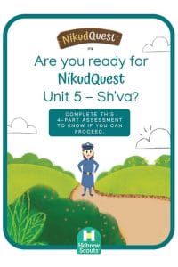 In the Sh’va Guidebook, the character Ze’ev leads children through exciting quests. The Sh’va Guidebook builds off of the knowledge students have learned in previous lessons (Kamatz, Patach, Tzeireh, Segol). It focuses on: