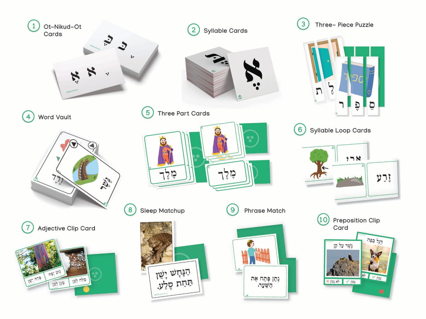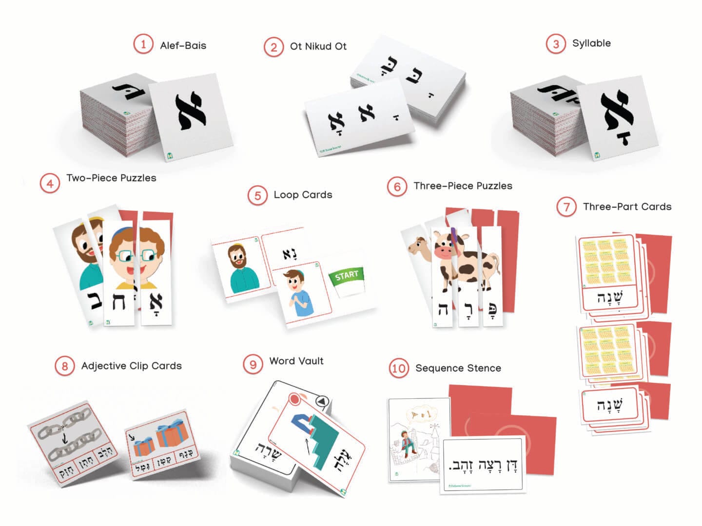 The game packs builds off of students’ knowledge from previous lessons and concentrates on exposing students to Hebrew syllables, words, phrases and sentences. The game packs work on building Hebrew phonological skills, decoding skills, vocabulary, grammar, Jewish text and culture and much more.